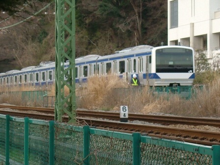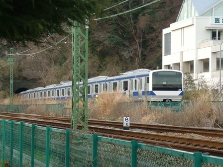 この日は常磐線新型「E531」の撮影に行きました。いつも乗る電車の2本前にのり、300円はたいて京急にのって神武寺にいきました。ここから池子トンネル前の留置線を目指すわけですが・・・・・・っと見えてきました。ふにゃ?