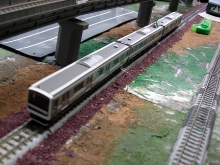 でもって明日は私の唯一の完成品車両、小田急7000形車両を走らせるんですよ~もちろん連接台車の車両でありまして、一両脱線すると全両が落っこちるという代物。試運転した限りでは上手く動いたので問題はないと思いますが・・・・・・・・
